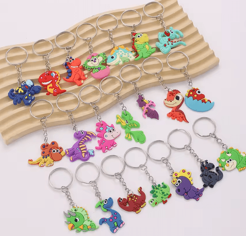 5 x Dino keyrings - made from durable rubber, perfect for school bags